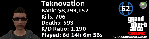 <a href="http://GTAonlinestats.com/showplayer/Teknovation"><img src="http://GTAonlinestats.com/signature/Teknovation/sig.png" alt="Teknovation" border="0" /></a>