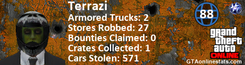 [URL=http://GTAonlinestats.com/showplayer/Terrazi/2][IMG]http://GTAonlinestats.com/crimesignature/Terrazi/2/sig.png[/IMG][/URL]