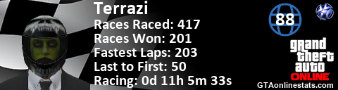 [URL=http://GTAonlinestats.com/showplayer/Terrazi/2][IMG]http://GTAonlinestats.com/racesignature/Terrazi/2/sig.png[/IMG][/URL]