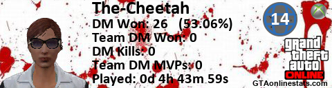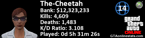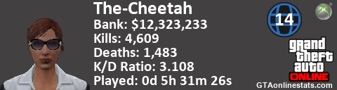 <a href="http://GTAonlinestats.com/showplayer/The-Cheetah/2"><img src="http://GTAonlinestats.com/signature/The-Cheetah/2/sig.png" alt="The-Cheetah" border="0" /></a>