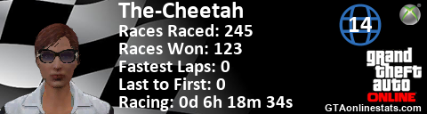 [URL=http://GTAonlinestats.com/showplayer/The-Cheetah/2][IMG]http://GTAonlinestats.com/racesignature/The-Cheetah/2/sig.png[/IMG][/URL]