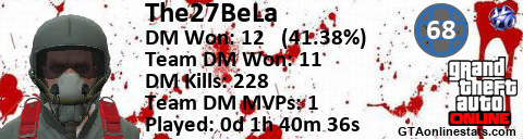 [URL=http://GTAonlinestats.com/showplayer/The27BeLa][IMG]http://GTAonlinestats.com/dmsignature/The27BeLa/sig.png[/IMG][/URL]