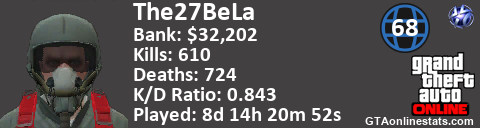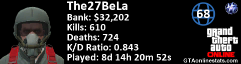 <a href="http://GTAonlinestats.com/showplayer/The27BeLa"><img src="http://GTAonlinestats.com/signature/The27BeLa/sig.png" alt="The27BeLa" border="0" /></a>