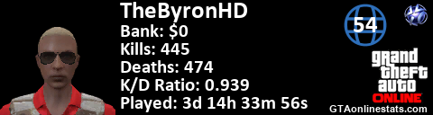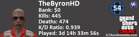 [URL=http://GTAonlinestats.com/showplayer/TheByronHD][IMG]http://GTAonlinestats.com/dmsignature/TheByronHD/sig.png[/IMG][/URL]