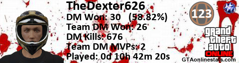 [URL=http://GTAonlinestats.com/showplayer/TheDexter626][IMG]http://GTAonlinestats.com/dmsignature/TheDexter626/sig.png[/IMG][/URL]