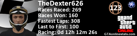 <a href="http://GTAonlinestats.com/showplayer/TheDexter626"><img src="http://GTAonlinestats.com/racesignature/TheDexter626/sig.png" alt="TheDexter626" border="0" /></a>