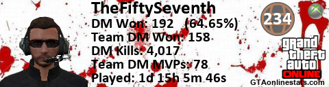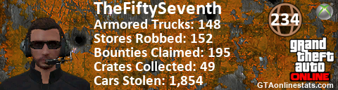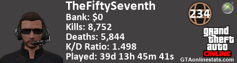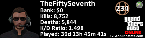 <a href="http://GTAonlinestats.com/showplayer/TheFiftySeventh"><img src="http://GTAonlinestats.com/signature/TheFiftySeventh/sig.png" alt="TheFiftySeventh" border="0" /></a>