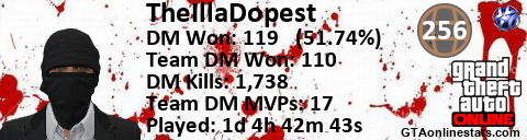 [URL=http://GTAonlinestats.com/showplayer/TheIllaDopest][IMG]http://GTAonlinestats.com/dmsignature/TheIllaDopest/sig.png[/IMG][/URL]