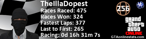 <a href="http://GTAonlinestats.com/showplayer/TheIllaDopest"><img src="http://GTAonlinestats.com/racesignature/TheIllaDopest/sig.png" alt="TheIllaDopest" border="0" /></a>