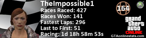 [URL=http://GTAonlinestats.com/showplayer/TheImpossible1][IMG]http://GTAonlinestats.com/racesignature/TheImpossible1/sig.png[/IMG][/URL]