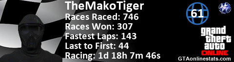 [URL=http://GTAonlinestats.com/showplayer/TheMakoTiger/2][IMG]http://GTAonlinestats.com/racesignature/TheMakoTiger/2/sig.png[/IMG][/URL]