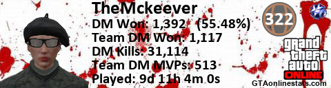 [URL=http://GTAonlinestats.com/showplayer/TheMckeever][IMG]http://GTAonlinestats.com/dmsignature/TheMckeever/sig.png[/IMG][/URL]