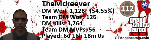 [URL=http://GTAonlinestats.com/showplayer/TheMckeever/2][IMG]http://GTAonlinestats.com/dmsignature/TheMckeever/2/sig.png[/IMG][/URL]