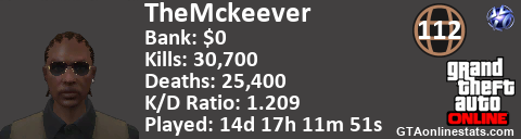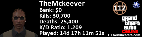 [URL=http://GTAonlinestats.com/showplayer/TheMckeever/2][IMG]http://GTAonlinestats.com/signature/TheMckeever/2/sig.png[/IMG][/URL]