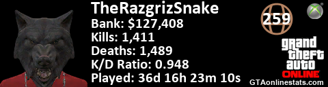 <a href="http://GTAonlinestats.com/showplayer/TheRazgrizSnake"><img src="http://GTAonlinestats.com/dmsignature/TheRazgrizSnake/sig.png" alt="TheRazgrizSnake" border="0" /></a>