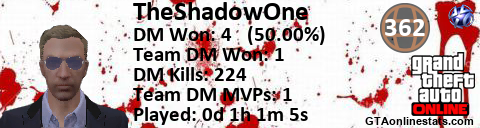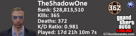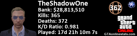 [URL=http://GTAonlinestats.com/showplayer/TheShadowOne][IMG]http://GTAonlinestats.com/dmsignature/TheShadowOne/sig.png[/IMG][/URL]