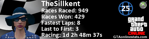 [URL=http://GTAonlinestats.com/showplayer/TheSillkent/2][IMG]http://GTAonlinestats.com/racesignature/TheSillkent/2/sig.png[/IMG][/URL]