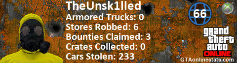<a href="http://GTAonlinestats.com/showplayer/TheUnsk1lled"><img src="http://GTAonlinestats.com/crimesignature/TheUnsk1lled/sig.png" alt="TheUnsk1lled" border="0" /></a>
