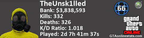 <a href="http://GTAonlinestats.com/showplayer/TheUnsk1lled"><img src="http://GTAonlinestats.com/dmsignature/TheUnsk1lled/sig.png" alt="TheUnsk1lled" border="0" /></a>