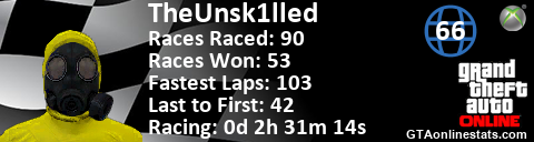 <a href="http://GTAonlinestats.com/showplayer/TheUnsk1lled"><img src="http://GTAonlinestats.com/racesignature/TheUnsk1lled/sig.png" alt="TheUnsk1lled" border="0" /></a>