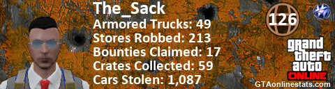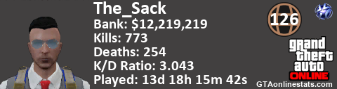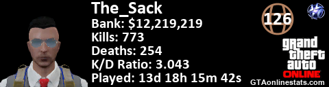 <a href="http://GTAonlinestats.com/showplayer/The_Sack/2"><img src="http://GTAonlinestats.com/signature/The_Sack/2/sig.png" alt="The_Sack" border="0" /></a>