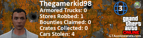 [URL=http://GTAonlinestats.com/showplayer/Thegamerkid98/2][IMG]http://GTAonlinestats.com/randomsignature/Thegamerkid98/2/sig.png[/IMG][/URL]