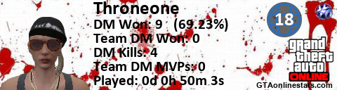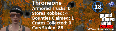 [URL=http://GTAonlinestats.com/showplayer/Throneone/2][IMG]http://GTAonlinestats.com/greysignature/Throneone/2/sig.png[/IMG][/URL]