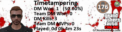 [URL=http://GTAonlinestats.com/showplayer/Timetampering][IMG]http://GTAonlinestats.com/dmsignature/Timetampering/sig.png[/IMG][/URL]
