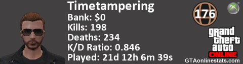 <a href="http://GTAonlinestats.com/showplayer/Timetampering"><img src="http://GTAonlinestats.com/signature/Timetampering/sig.png" alt="Timetampering" border="0" /></a>