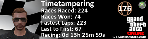 <a href="http://GTAonlinestats.com/showplayer/Timetampering"><img src="http://GTAonlinestats.com/racesignature/Timetampering/sig.png" alt="Timetampering" border="0" /></a>