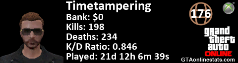 <a href="http://GTAonlinestats.com/showplayer/Timetampering"><img src="http://GTAonlinestats.com/greysignature/Timetampering/sig.png" alt="Timetampering" border="0" /></a>