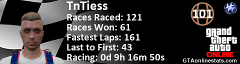 <a href="http://GTAonlinestats.com/showplayer/TnTiess"><img src="http://GTAonlinestats.com/racesignature/TnTiess/sig.png" alt="TnTiess" border="0" /></a>