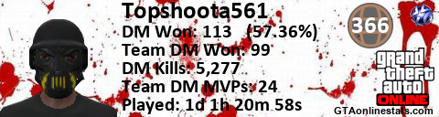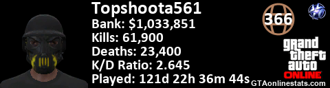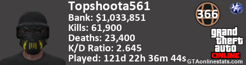 [URL=http://GTAonlinestats.com/showplayer/Topshoota561][IMG]http://GTAonlinestats.com/dmsignature/Topshoota561/sig.png[/IMG][/URL]