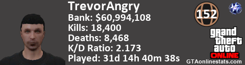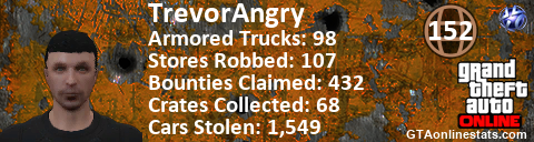 [URL=http://GTAonlinestats.com/showplayer/TrevorAngry][IMG]http://GTAonlinestats.com/randomsignature/TrevorAngry/sig.png[/IMG][/URL]