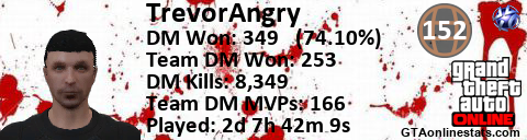 [URL=http://GTAonlinestats.com/showplayer/TrevorAngry][IMG]http://GTAonlinestats.com/dmsignature/TrevorAngry/sig.png[/IMG][/URL]