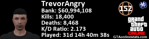 <a href="http://GTAonlinestats.com/showplayer/TrevorAngry"><img src="http://GTAonlinestats.com/randomsignature/TrevorAngry/sig.png" alt="TrevorAngry" border="0" /></a>