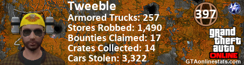 <a href="http://GTAonlinestats.com/showplayer/Tweeble"><img src="http://GTAonlinestats.com/randomsignature/Tweeble/sig.png" alt="Tweeble" border="0" /></a>