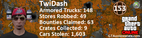 [URL=http://GTAonlinestats.com/showplayer/TwiDash][IMG]http://GTAonlinestats.com/randomsignature/TwiDash/sig.png[/IMG][/URL]