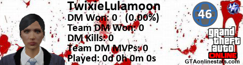 [URL=http://GTAonlinestats.com/showplayer/TwixieLulamoon/2][IMG]http://GTAonlinestats.com/dmsignature/TwixieLulamoon/2/sig.png[/IMG][/URL]