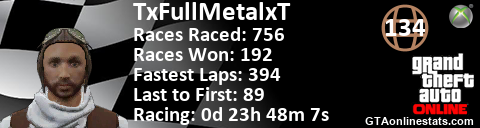 [URL=http://GTAonlinestats.com/showplayer/TxFullMetalxT][IMG]http://GTAonlinestats.com/racesignature/TxFullMetalxT/sig.png[/IMG][/URL]