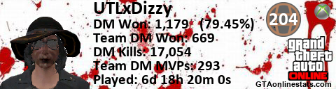 [URL=http://GTAonlinestats.com/showplayer/UTLxDizzy/2][IMG]http://GTAonlinestats.com/dmsignature/UTLxDizzy/2/sig.png[/IMG][/URL]