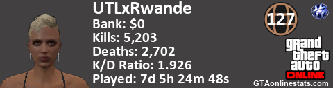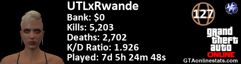 [URL=http://GTAonlinestats.com/showplayer/UTLxRwande/2][IMG]http://GTAonlinestats.com/signature/UTLxRwande/2/sig.png[/IMG][/URL]