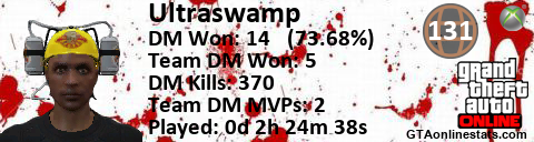 [URL=http://GTAonlinestats.com/showplayer/Ultraswamp][IMG]http://GTAonlinestats.com/dmsignature/Ultraswamp/sig.png[/IMG][/URL]
