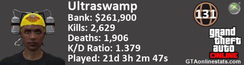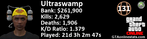 <a href="http://GTAonlinestats.com/showplayer/Ultraswamp"><img src="http://GTAonlinestats.com/signature/Ultraswamp/sig.png" alt="Ultraswamp" border="0" /></a>
