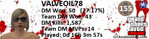 [URL=http://GTAonlinestats.com/showplayer/VALVEOIL78][IMG]http://GTAonlinestats.com/dmsignature/VALVEOIL78/sig.png[/IMG][/URL]