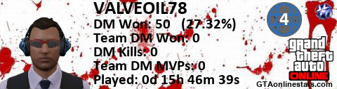 [URL=http://GTAonlinestats.com/showplayer/VALVEOIL78/2][IMG]http://GTAonlinestats.com/dmsignature/VALVEOIL78/2/sig.png[/IMG][/URL]