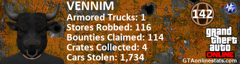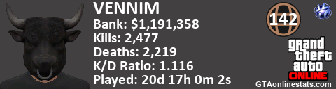[URL=http://GTAonlinestats.com/showplayer/VENNIM][IMG]http://GTAonlinestats.com/signature/VENNIM/sig.png[/IMG][/URL]
