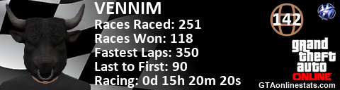 [URL=http://GTAonlinestats.com/showplayer/VENNIM][IMG]http://GTAonlinestats.com/racesignature/VENNIM/sig.png[/IMG][/URL]
