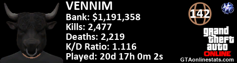 <a href="http://GTAonlinestats.com/showplayer/VENNIM"><img src="http://GTAonlinestats.com/greysignature/VENNIM/sig.png" alt="VENNIM" border="0" /></a>