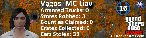 [URL=http://GTAonlinestats.com/showplayer/Vagos_MC-Liav/3][IMG]http://GTAonlinestats.com/crimesignature/Vagos_MC-Liav/3/sig.png[/IMG][/URL]